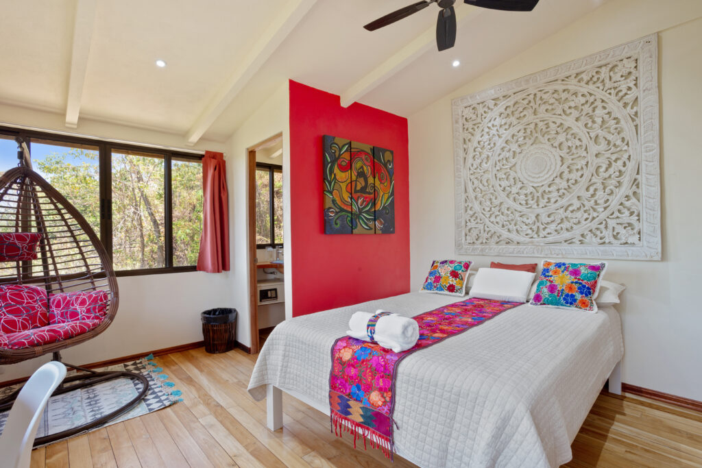 Ganesh has a queen sized bed, and is unique because it has a view of both the sunrise and the sunset… as well as a distant visa of Cabo Blanco national park, located at the southernmost tip of the Nicoya Peninsula. On a rare day, you might be able to see a rainbow down inside the valley, coming from a waterfall that’s hidden in there.