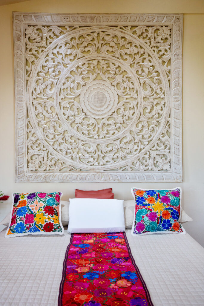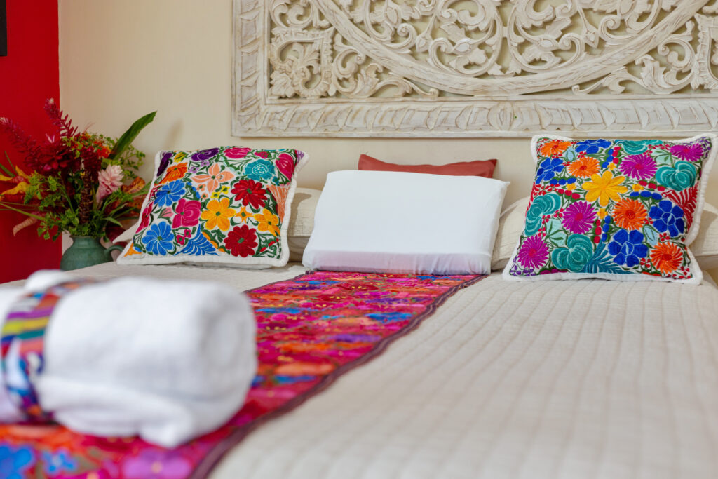 The ‘split king’ Morrocan-inpired beds are our own unique design, made in Costa Rica from cenizaro wood. We have a variety of high quality bedding and our linens are organic.