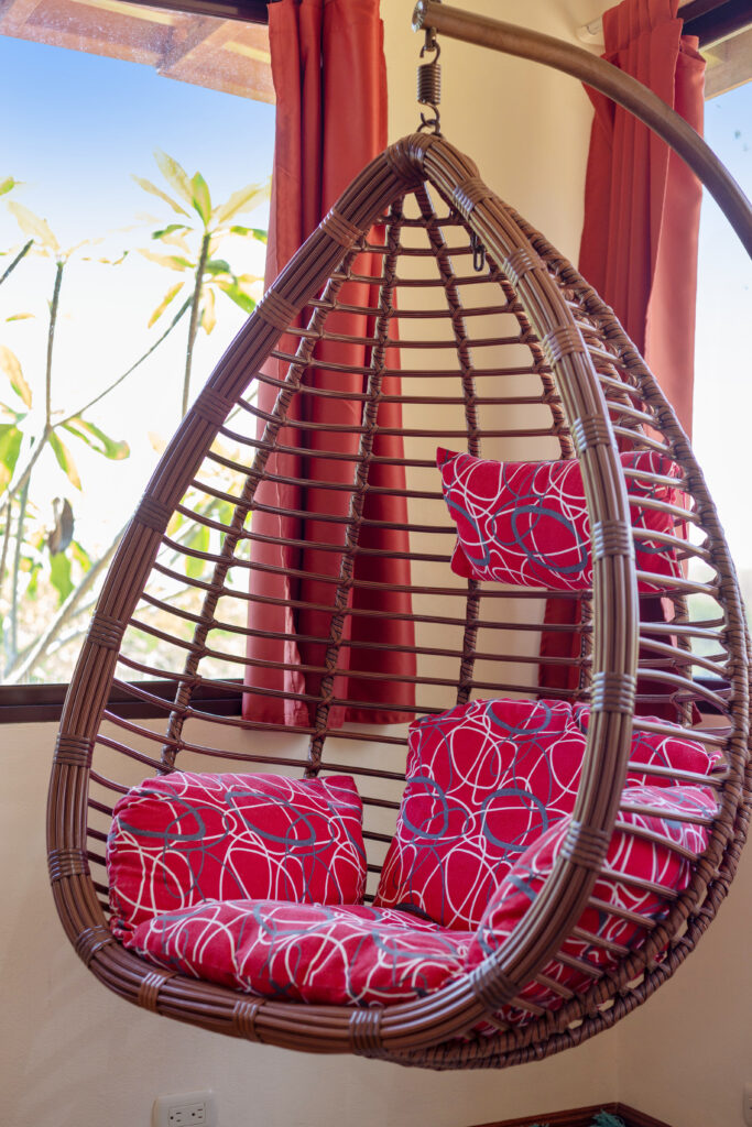 There is an open air closet, which is the best way to store clothing in the tropics, a desk for your laptop, and an outdoor deck with hammocks.